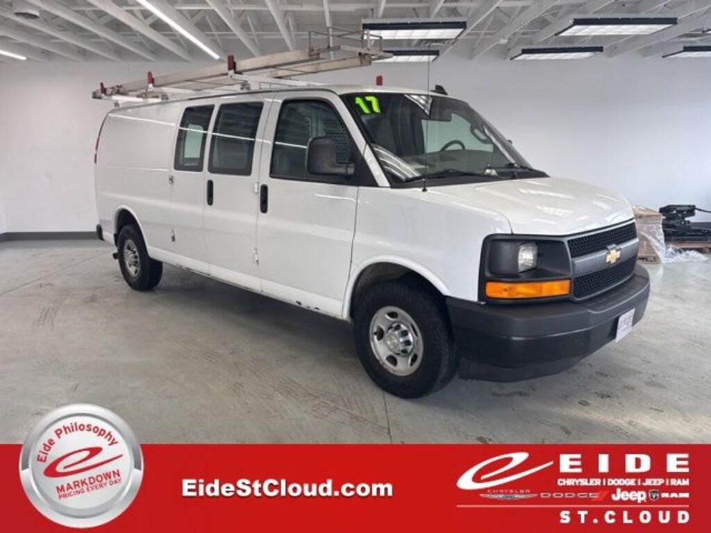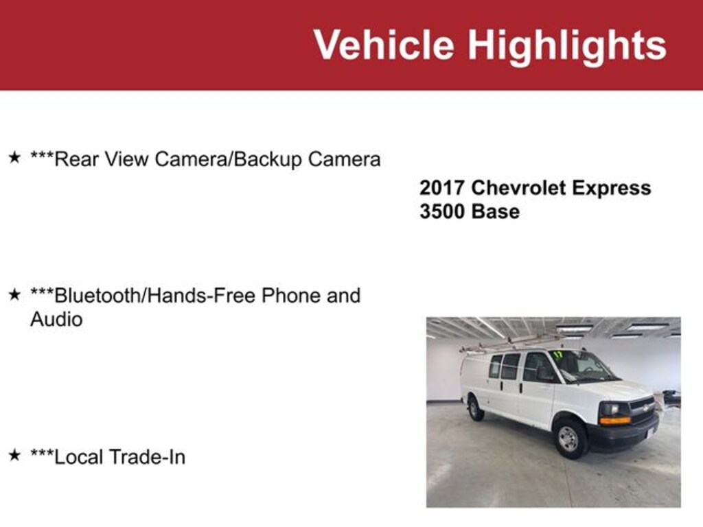 2017 Chevrolet Express 3500 3D Extended Cargo Van Work Van Vortec 6.0L V8 SFI Flex Fuel RWD Summit White, Medium Pewter w/Custom Cloth Seat Trim