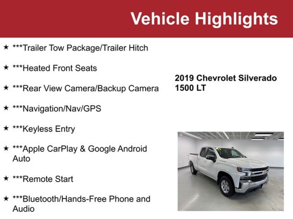 ***Trailer Tow Package/Trailer Hitch, ***Heated Front Seats, ***Rear View Camera/Backup Camera, ***Navigation/Nav/GPS, ***Keyless Entry, ***Apple CarPlay & Google Android Auto, ***Remote Start, ***Bluetooth/Hands-Free Phone and Audio, ***Keyless Start, ***Heated Steering Wheel, ***Accident-Free Autocheck, ***Local Trade-In, 8-Speed Automatic, 4WD, Jet Black w/Cloth Seat Trim, 10-Way Power Driver Seat w/Lumbar, 12-Volt Rear Auxiliary Power Outlet, 2 USB Ports (First Row), 4-Way Manual Driver Seat Adjuster, 4.2" Diagonal Color Display Driver Info Center, 40/20/40 Front Split-Bench Seat, All-Star Edition, Bluetooth® For Phone, Chevrolet Connected Access, Chevrolet w/4G LTE, Chrome Grille, Chrome Mirror Caps, Color-Keyed Carpeting Floor Covering, Compass, Convenience Package, Deep-Tinted Glass, Dual-Zone Automatic Climate Control, Electric Rear-Window Defogger, Electrical Lock Control Steering Column, Electronic Cruise Control, EZ Lift Power Lock & Release Tailgate, Front Frame-Mounted Black Recovery Hooks, Front Rubberized Vinyl Floor Mats, Heated Driver & Front Passenger Seats, Heated Steering Wheel, Heavy-Duty Rear Locking Differential, Hitch Guidance, Keyless Open & Start, Leather Wrapped Steering Wheel, LED Cargo Area Lighting, Locking Tailgate, Manual Tilt Wheel Steering Column, Manual Tilt/Telescoping Steering Column, OnStar & Chevrolet Connected Services Capable, Power Door Locks, Power Front Windows w/Driver Express Up/Down, Power Front Windows w/Passenger Express Down, Power Rear Windows w/Express Down, Preferred Equipment Group 1LT, Rear 60/40 Folding Bench Seat (Folds Up), Rear Dual USB Charging-Only Ports, Rear Rubberized-Vinyl Floor Mats, Rear Vision Camera, Remote Keyless Entry, Remote Vehicle Starter System, Single-Zone Manual/Semi-Automatic Air Conditioning, Steering Wheel Audio Controls, Theft Deterrent System (Unauthorized Entry), Trailering Package, Urethane Steering Wheel.