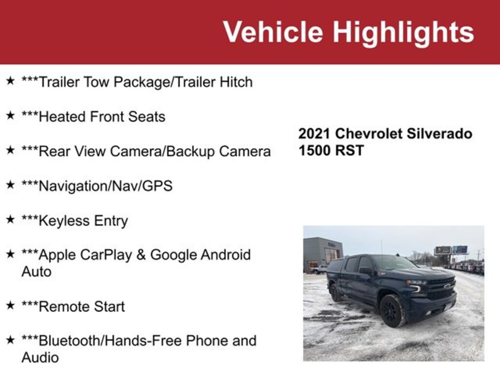 2021 Chevrolet Silverado 1500 4D Crew Cab RST EcoTec3 5.3L V8 4WD Northsky Blue Metallic