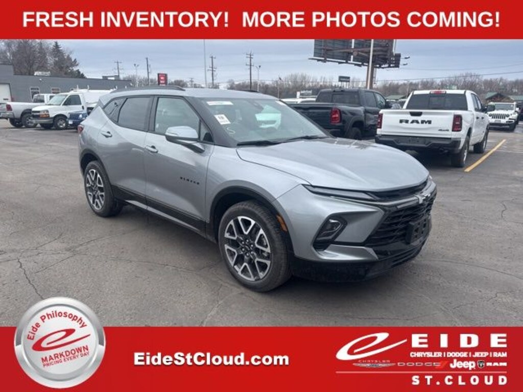 2025 Chevrolet Blazer 4D Sport Utility RS 3.6L V6 SIDI FWD Sterling Gray Metallic, Jet Black/Red Accents w/Perforated Leather-Appointed Seat Trim