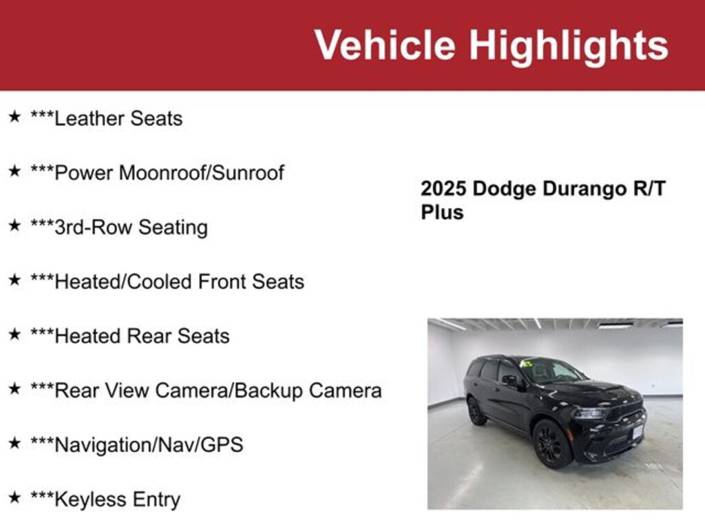 2025 Dodge Durango 4D Sport Utility R/T Plus HEMI 5.7L V8 Multi Displacement VVT AWD DB Black Clearcoat, Red/Black/Ebony w/Leather Trimmed Bucket Seats