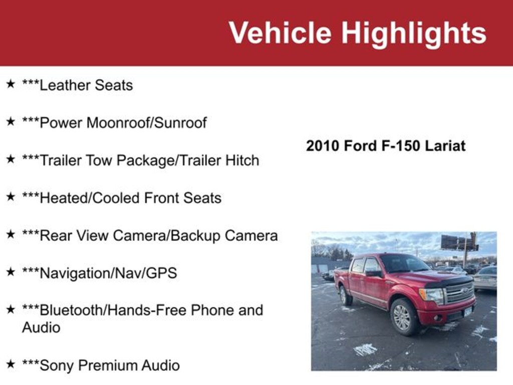 2010 Ford F-150 4D SuperCrew Platinum 5.4L V8 EFI 24V FFV 4WD Red Candy Metallic Tinted Clearcoat, Tan/Camel w/Leather-Trimmed 40/20/40 Front Seat