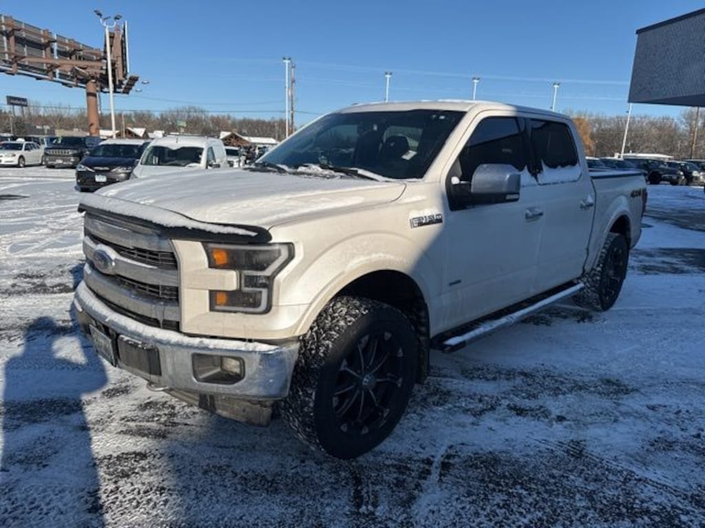 2015 Ford F-150 4D SuperCrew Lariat 3.5L V6 4WD White Platinum Metallic Tri-Coat, Black w/Leather-Trimmed Bucket Seats