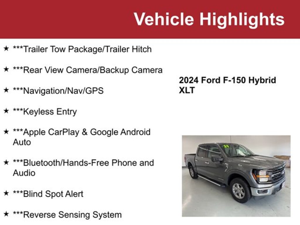 2024 Ford F-150 4D SuperCrew XLT 3.5L PowerBoost Full-Hybrid V6 4WD Carbonized Gray Metallic, Black w/Medium Dark Slate w/Cloth 40/Console/40 Front Seats