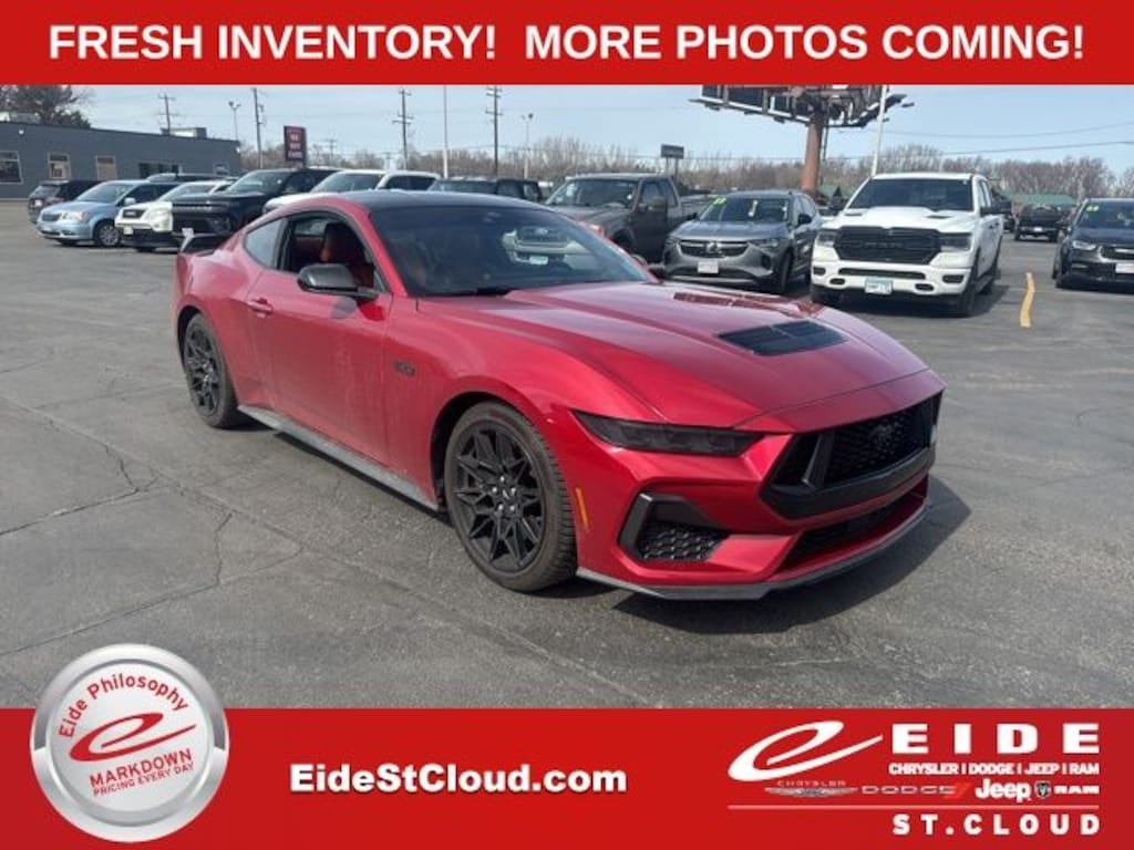 2024 Ford Mustang 2D Coupe GT Premium 5.0L V8 Ti-VCT RWD Rapid Red Metallic Tinted Clearcoat, Emberglo w/Leather-Trimmed Bucket Seats