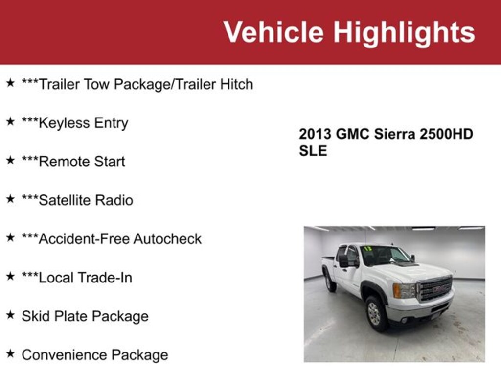 2013 GMC Sierra 2500HD 4D Crew Cab SLE Vortec 6.0L V8 SFI VVT 4WD Summit White, Ebony w/Premium Cloth Seat Trim