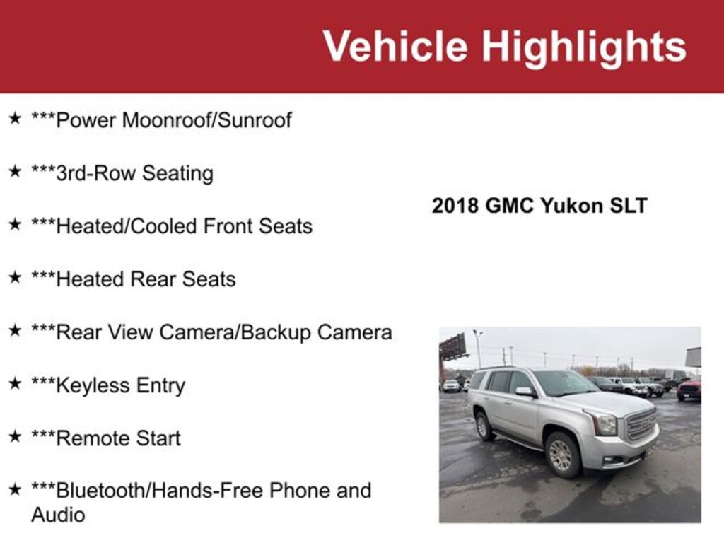 2018 GMC Yukon 4D Sport Utility SLT EcoTec3 5.3L V8 4WD Quicksilver Metallic, Jet Black w/Leather-Appointed Seat Trim