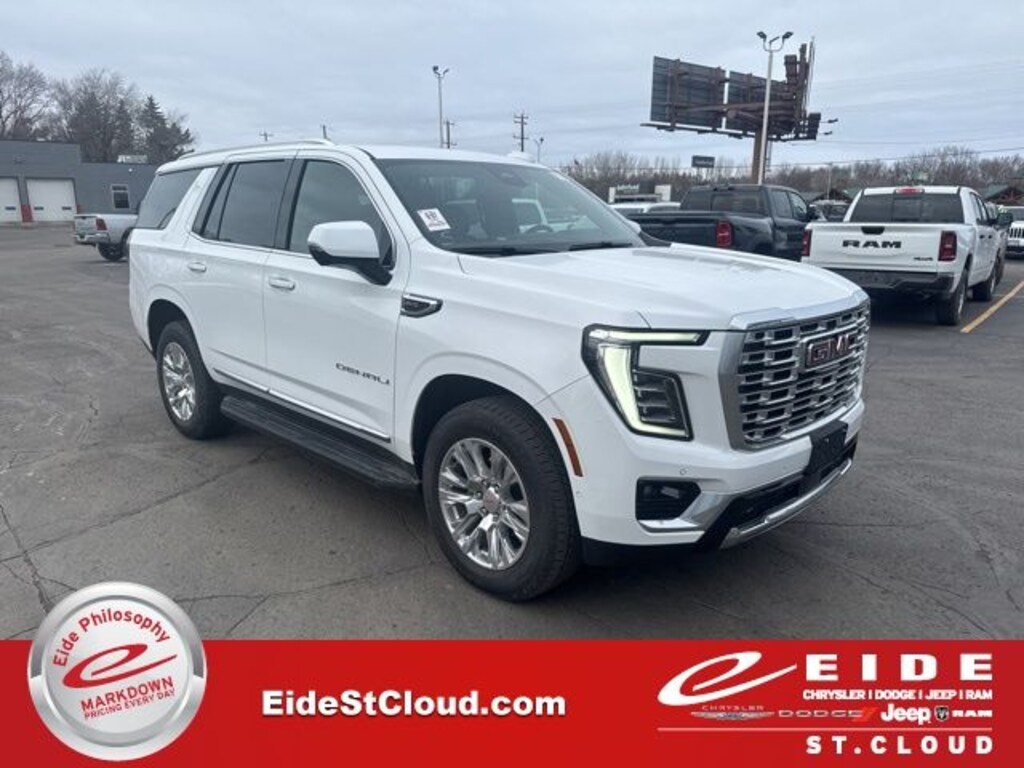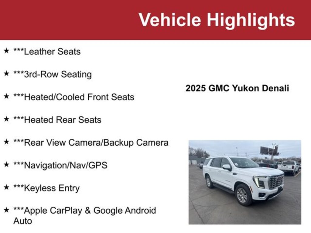 2025 GMC Yukon 4D Sport Utility Denali EcoTec3 6.2L V8 4WD Summit White, Jet Black w/Perforated Leather Seating Surfaces