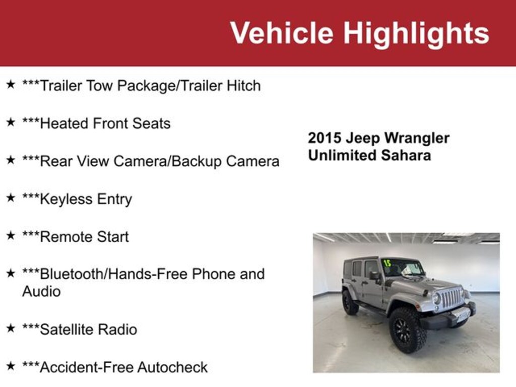 ***Trailer Tow Package/Trailer Hitch, ***Heated Front Seats, ***Rear View Camera/Backup Camera, ***Keyless Entry, ***Remote Start, ***Bluetooth/Hands-Free Phone and Audio, ***Satellite Radio, ***Accident-Free Autocheck, ***Local Trade-In, Connectivity Group, Quick Order Package 24G, Tire Pressure Monitoring Display, Vehicle Information Center.
