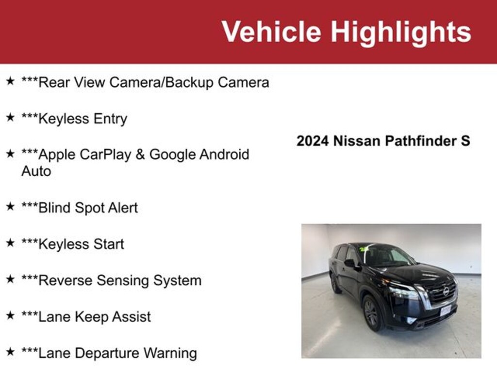 2024 Nissan Pathfinder 4D Sport Utility S 3.5L V6 DOHC 4WD Super Black, Charcoal w/Cloth Seating Surfaces
