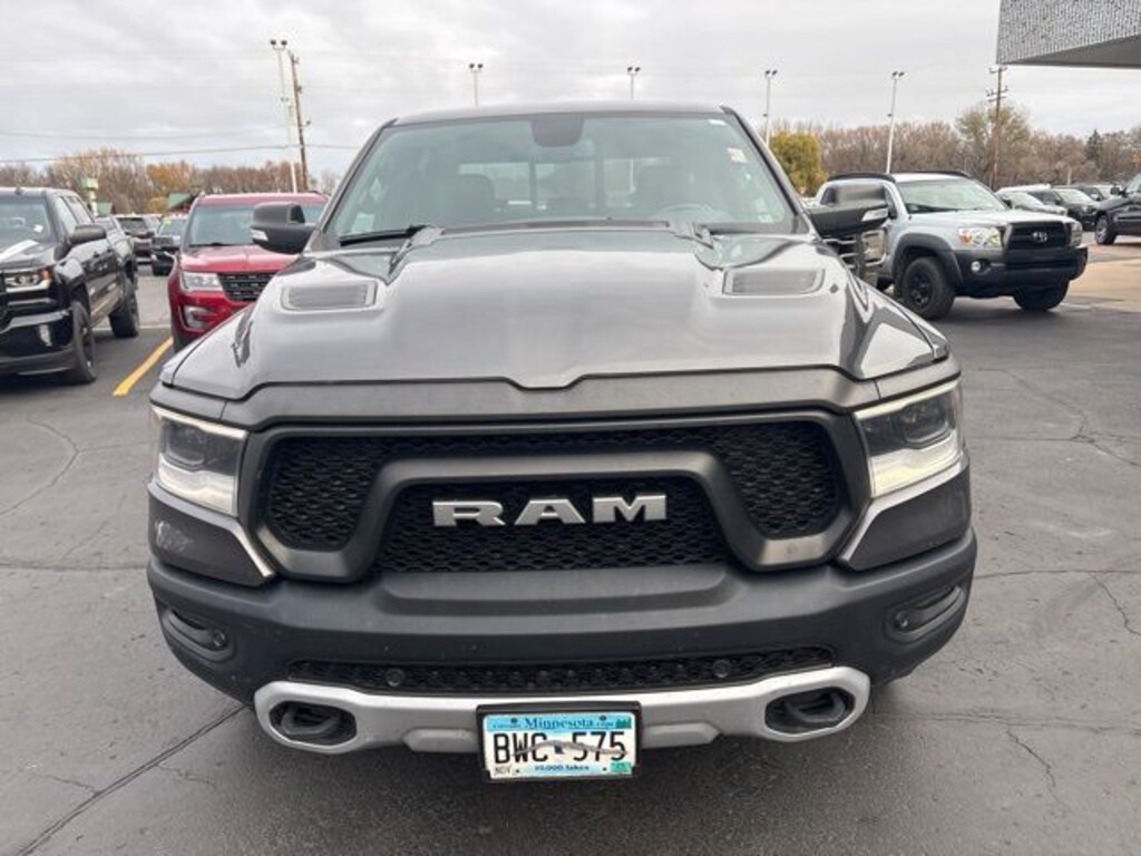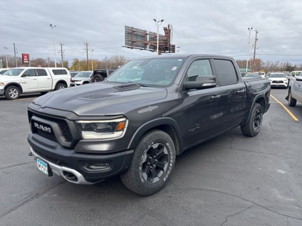 2019 Ram 1500 4D Crew Cab Rebel HEMI 5.7L V8 Multi Displacement VVT 4WD Granite Crystal Metallic Clearcoat, Red/Black w/Cloth/Vinyl Low Back Bucket Seats or Lux Leather Trimmed Bucket Seats