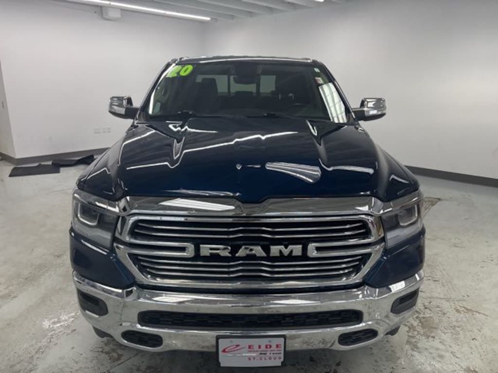 2020 Ram 1500 4D Crew Cab Laramie HEMI 5.7L V8 Multi Displacement VVT 4WD Patriot Blue Pearlcoat, Black w/Leather Trim 40/20/40 Bench Seat or Leather Trimmed Bucket Seats
