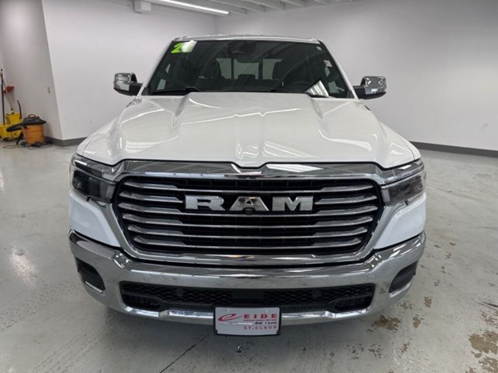 2025 Ram 1500 4D Crew Cab Laramie 3.0L I6 4WD Bright White Clearcoat, Black w/Leather Trim 40/20/40 Bench Seat