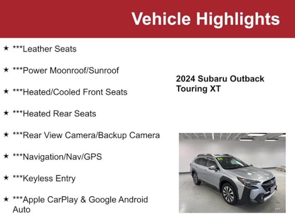 2024 Subaru Outback 4D Sport Utility Touring XT 2.4L DOHC AWD Ice Silver Metallic, Black w/Perforated Nappa Leather-Trimmed Upholstery